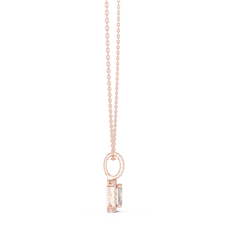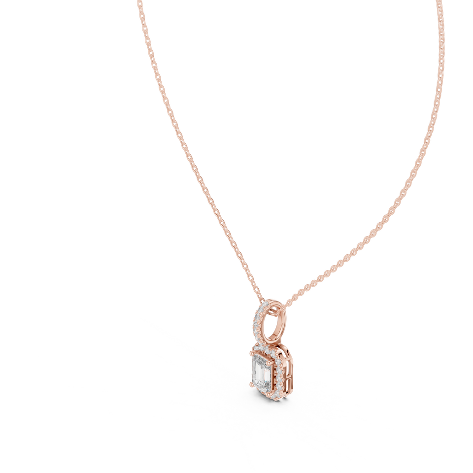 จี้เพชรทรงมรกตแบบ Halo ทองคำชมพู 18K ประดับเพชรเลี้ยงในห้องปฏิบัติการสุดหรูสำหรับผู้หญิง