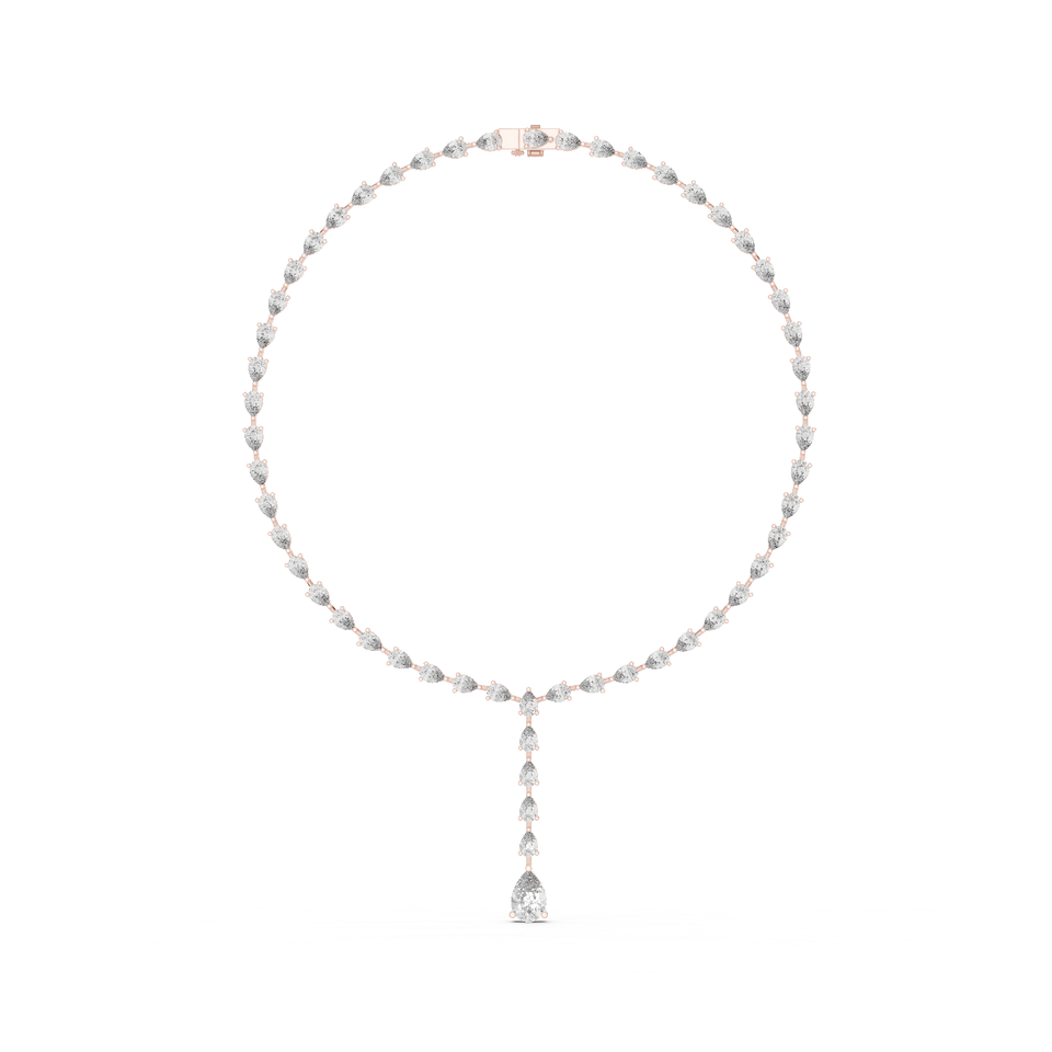สร้อยคอมุกทองคำ 18K ประดับเพชรทรงลูกแพร์เพาะเลี้ยงในห้องปฏิบัติการ สไตล์หรูหรา