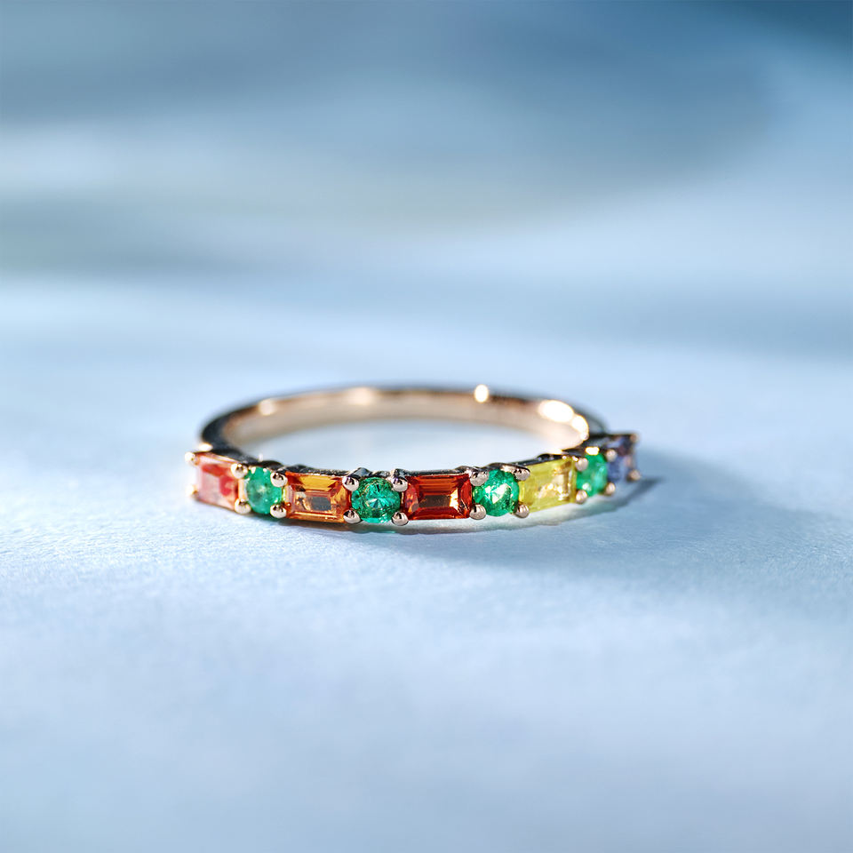 แหวนหมั้นทองคำแท้ 18K สีโรสโกลด์ ประดับไพลินและมรกตแบบครึ่งวง สำหรับงานแต่งงานและสุภาพสตรี
