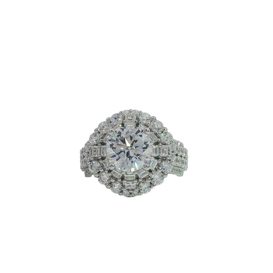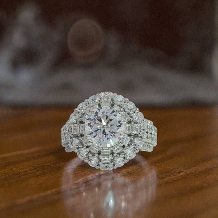 ทอง18K แข็ง2CT แล็บปลูกเพชรหรูหราแหวนง่ามสำหรับผู้หญิงปรับแต่งได้กลางหินสำหรับงานเลี้ยงครบรอบแต่งงาน