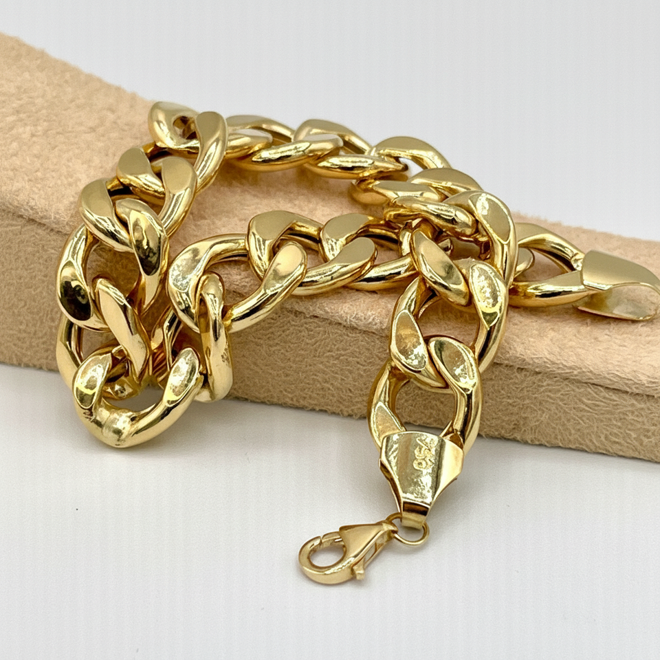 สร้อยข้อมือทองคำแท้ 18K แบบโซ่ Cuban Link สไตล์วินเทจ เครื่องประดับแฟชั่นสำหรับผู้หญิงและผู้ชาย ชุบทอง งานปาร์ตี้ โลหะผสม