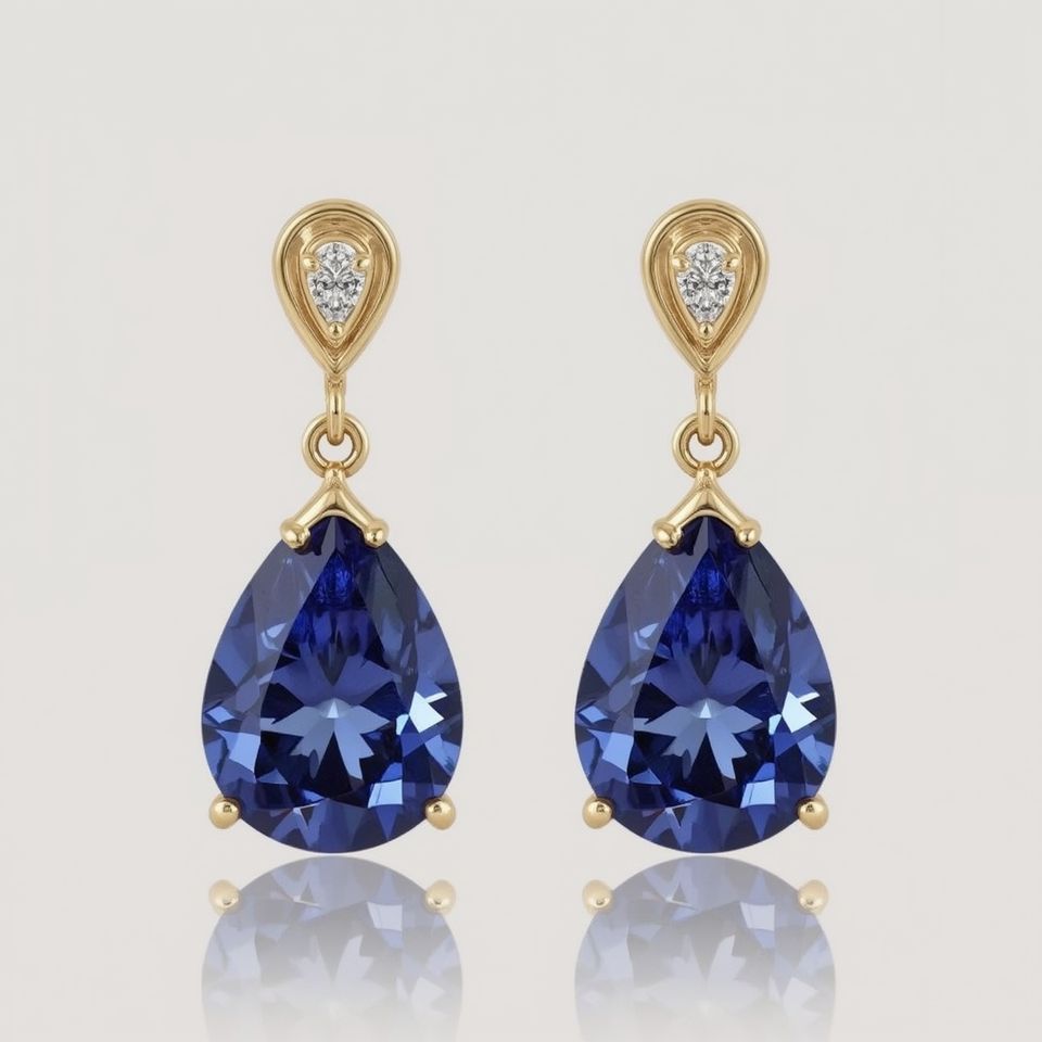 ต่างหูทองคำแท้ 18K ประดับแพลตตินั่มและแทนซาไนต์ทรงลูกแพร์ ตกแต่งด้วยเพชร ได้รับการรับรองจาก GIA ความใส VVS1 คุณภาพการเจียระไนเยี่ยม หรูหรา