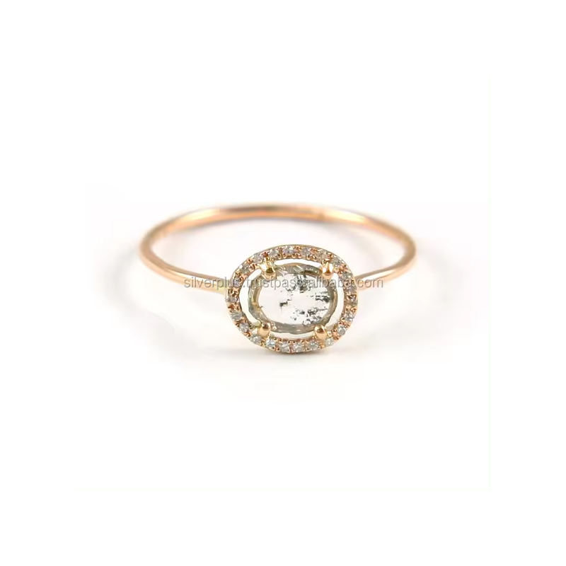 แหวนเพชรตัดชิ้นทองสีชมพูแข็ง 18K ผู้ค้าส่งและผู้ผลิตเครื่องประดับแฮนด์เมด