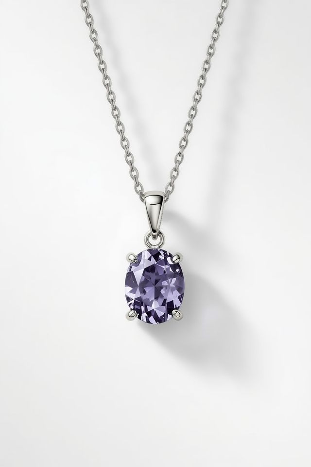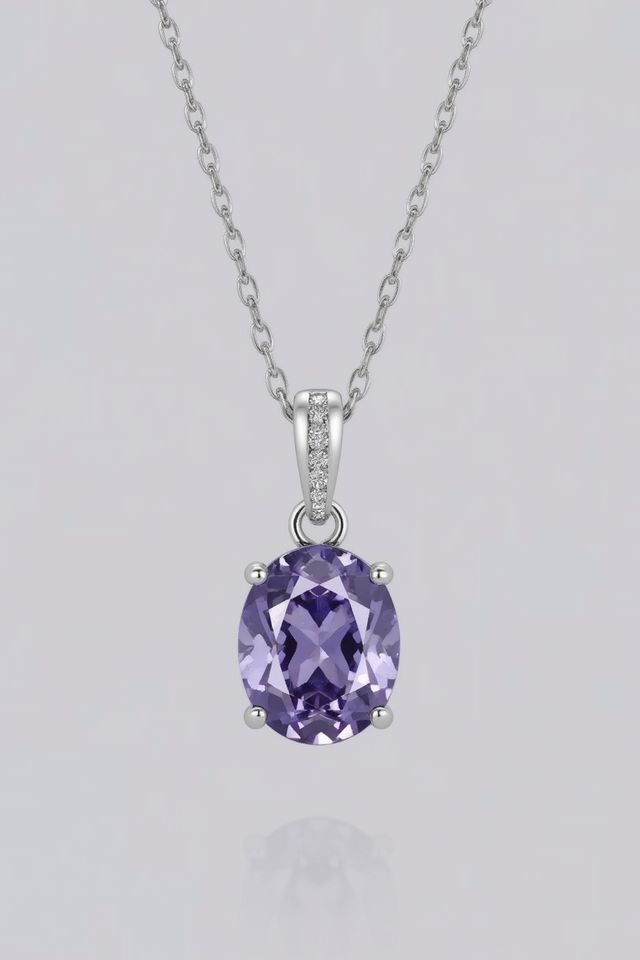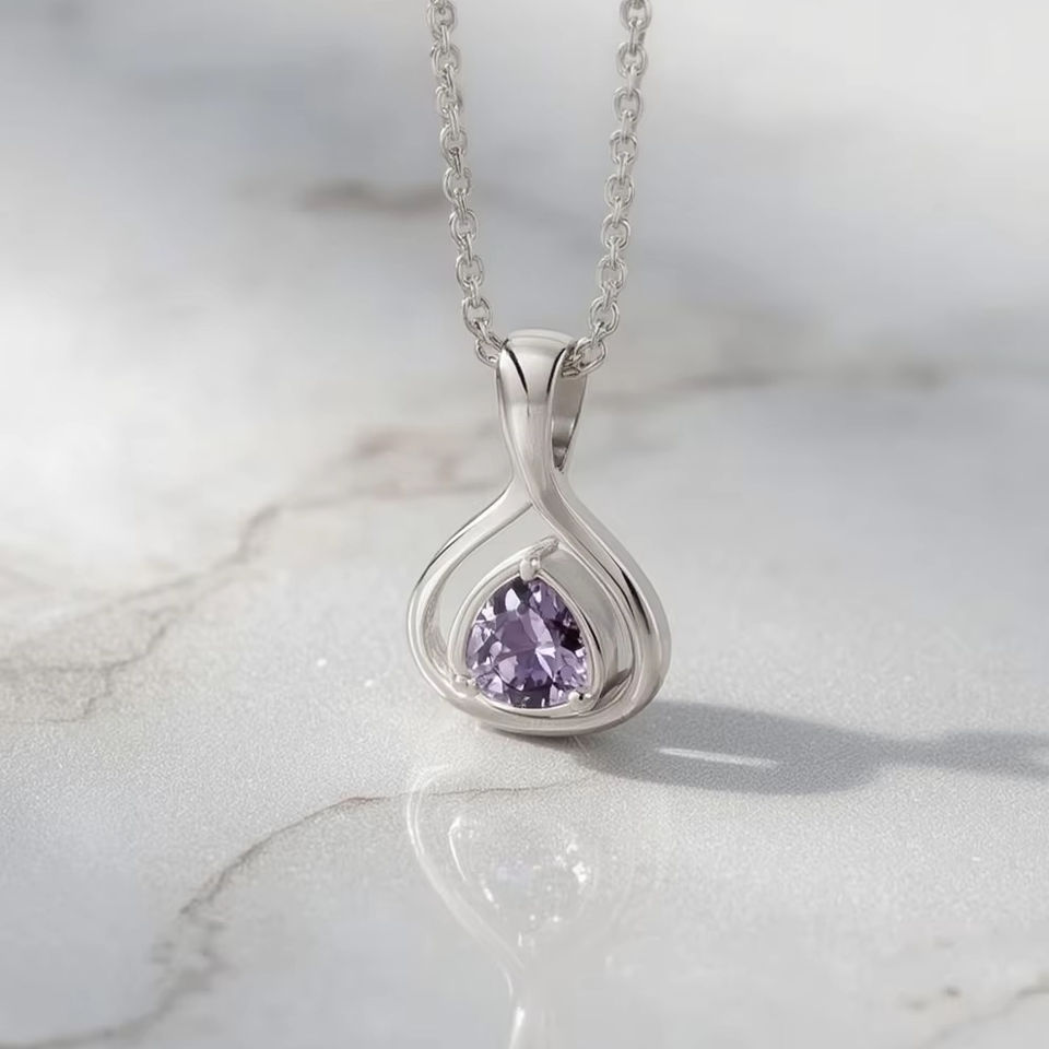 18K Solid White Gold Lavender Sapphire Modern Twist Pendant Necklace, Luxury Fine Jewelry, Unique Design