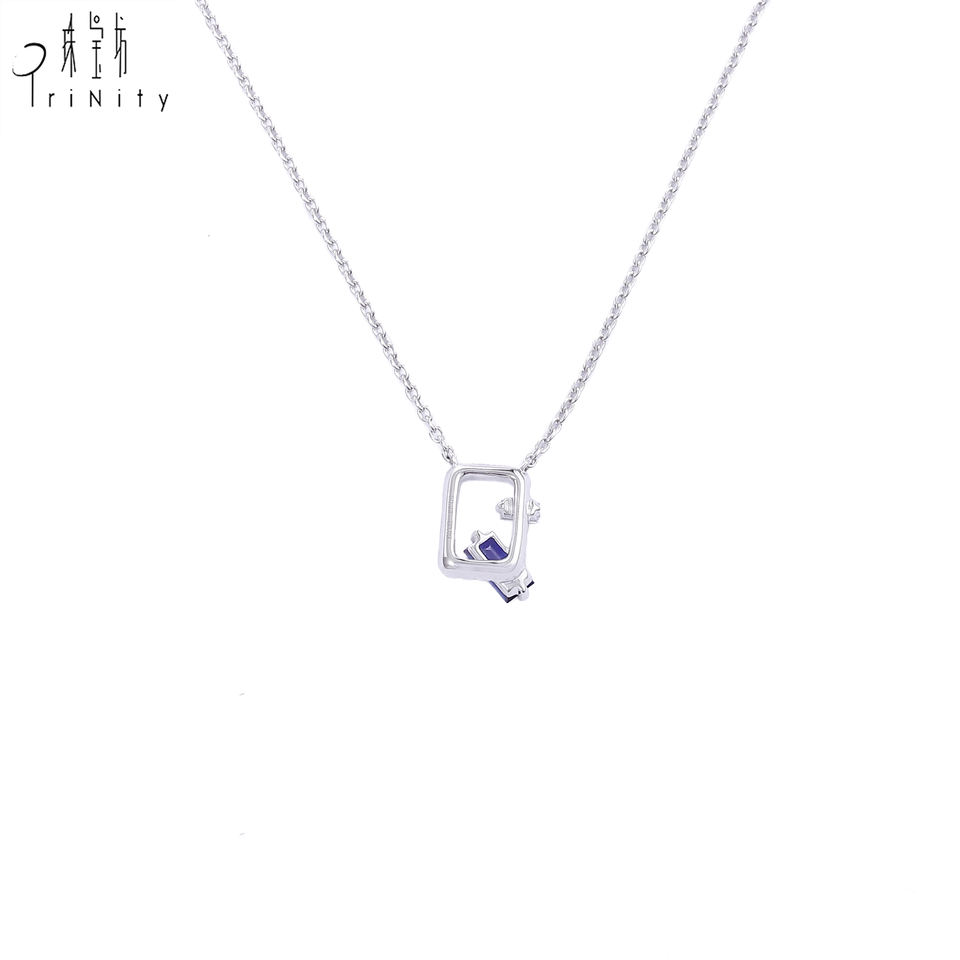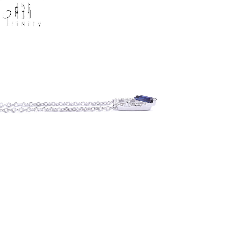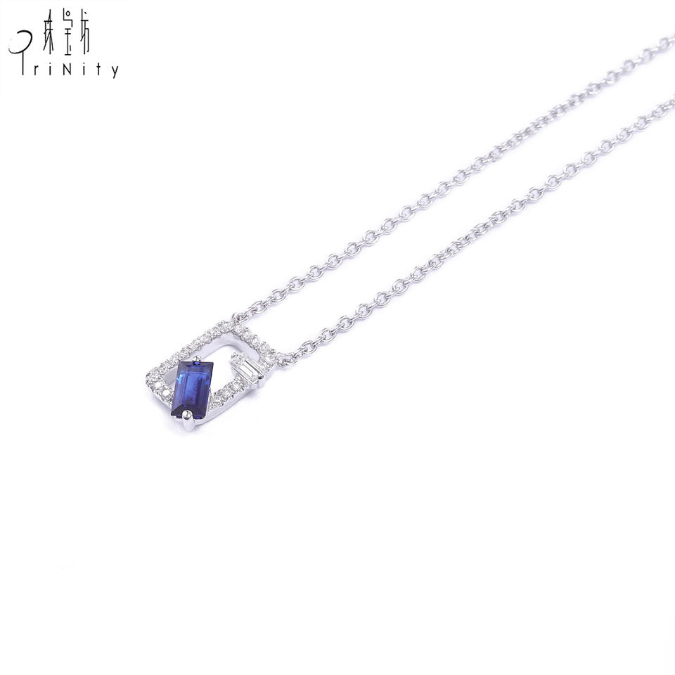 สร้อยคอทองคำสีขาวล้วน18K ทันสมัยพร้อมจี้เพชรสีฟ้าแท้เครื่องประดับแซฟไฟร์สำหรับเป็นของขวัญวันครบรอบแต่งงาน