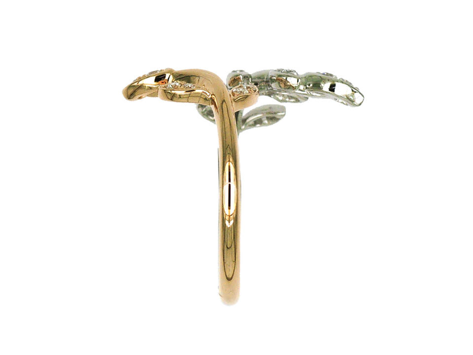 แหวนทองคำ 18K สองสี ประดับเพชรทรงใบไม้คู่ ดีไซน์เปิดวง โรแมนติก แรงบันดาลใจจากธรรมชาติ เครื่องประดับหรูหราสำหรับผู้หญิง