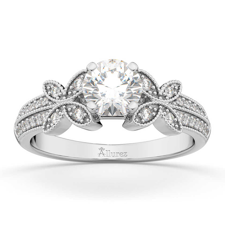 18K White Gold Butterfly Milgrain Diamond Engagement Ring 0.25ct Diamond Jewelry