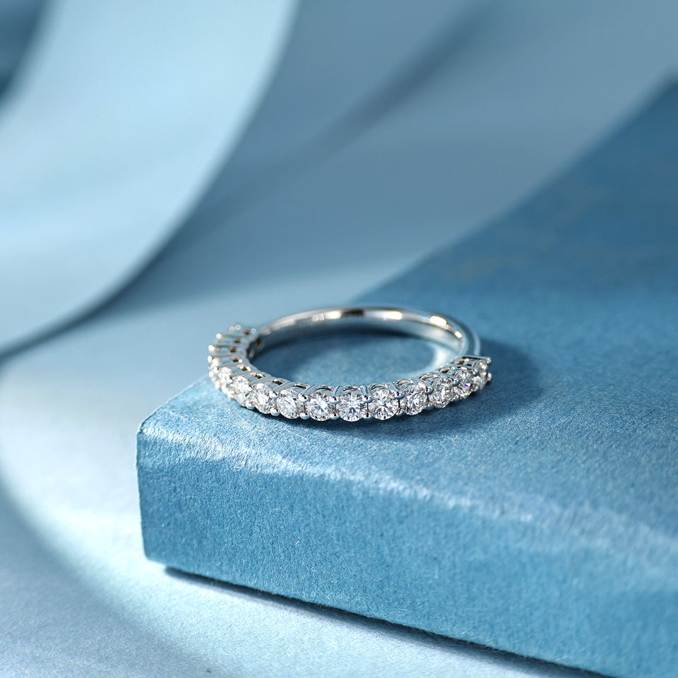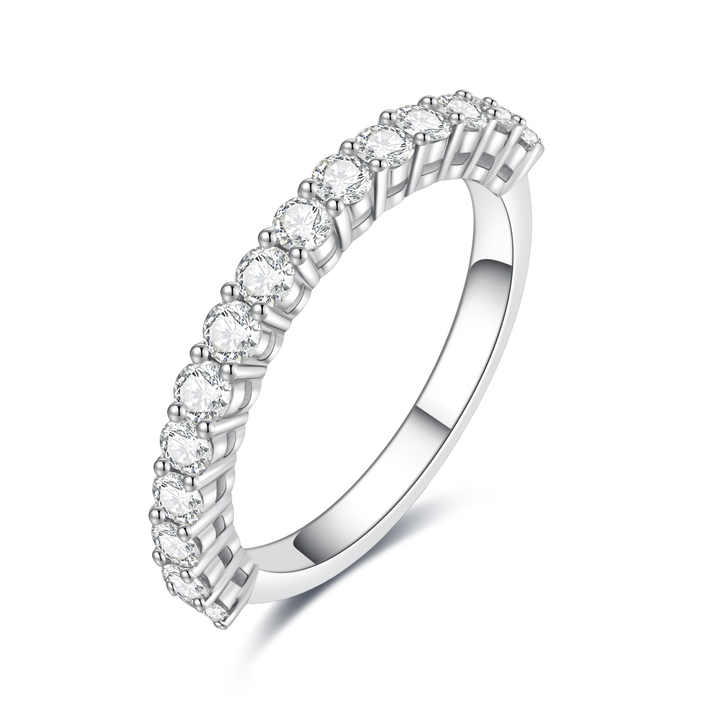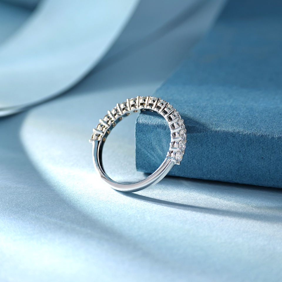แหวนหมั้นเพชรแท้ครึ่งวงกลมคลาสสิกทองคำขาว 18K คุณภาพสูง ชุบโรเดียม สำหรับผู้หญิง สวมใส่ได้ทุกวันและงานปาร์ตี้