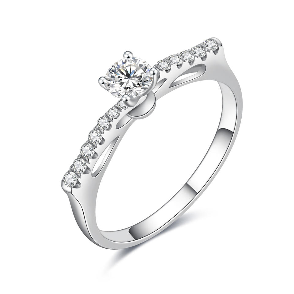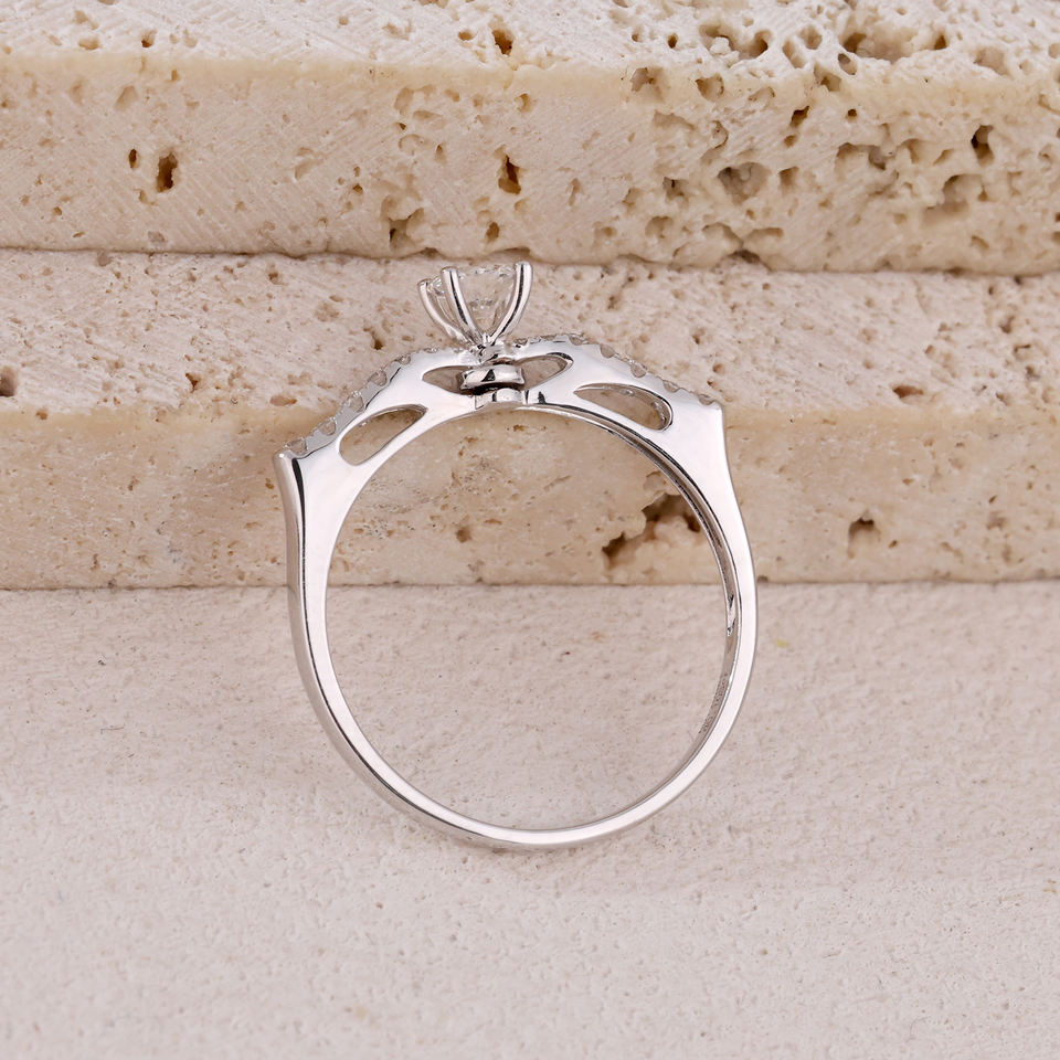 แหวนหมั้นเพชรแท้ทรงบริลเลียนต์คลาสสิกสั่งทำพิเศษ ทองคำขาว 18K ชุบโรเดียม ของขวัญแต่งงานสำหรับผู้หญิง ใส่ได้ทุกวัน