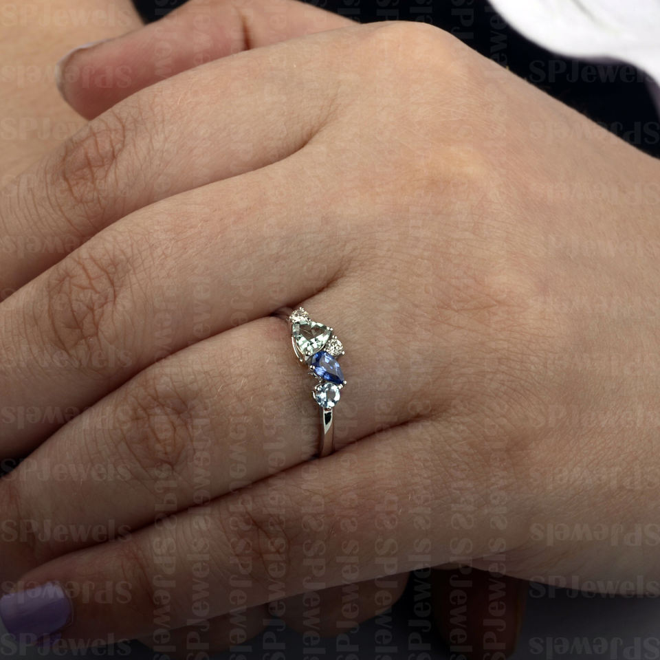 Stone:Natural Aquamarine, Sapphire, Tourmaline & Diamond