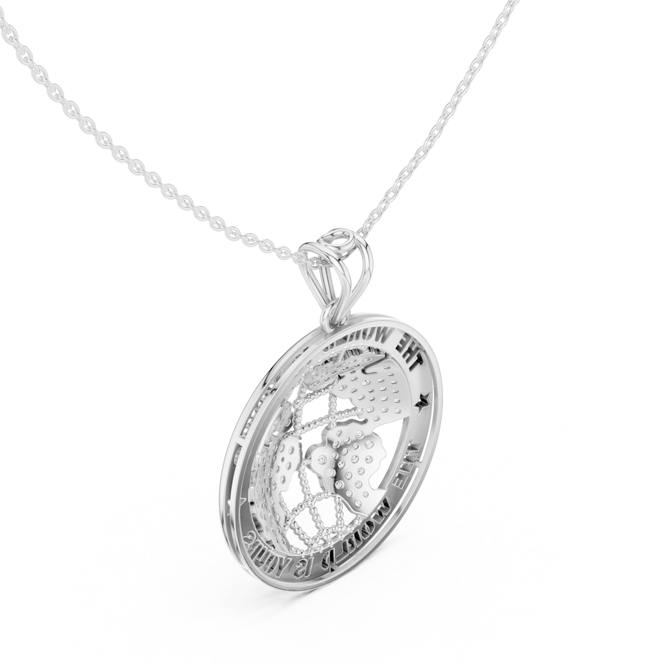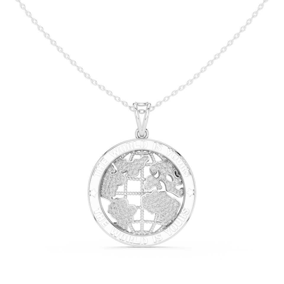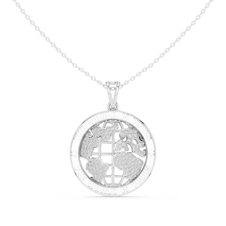สร้อยคอจี้รูปแผนที่โลกประดับเพชรแล็บโกรว์ 18K ทองคำขาว พร้อมเคลือบโรเดียม สไตล์ฮิปฮอป