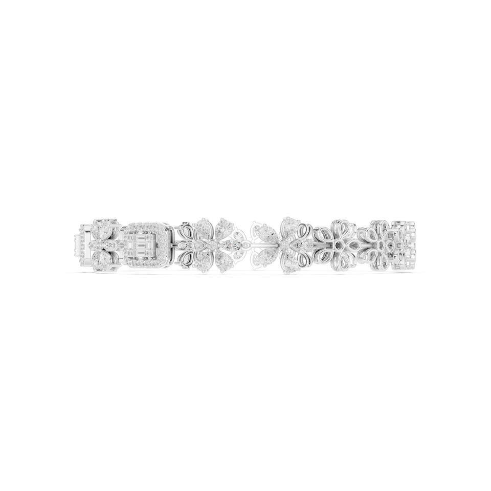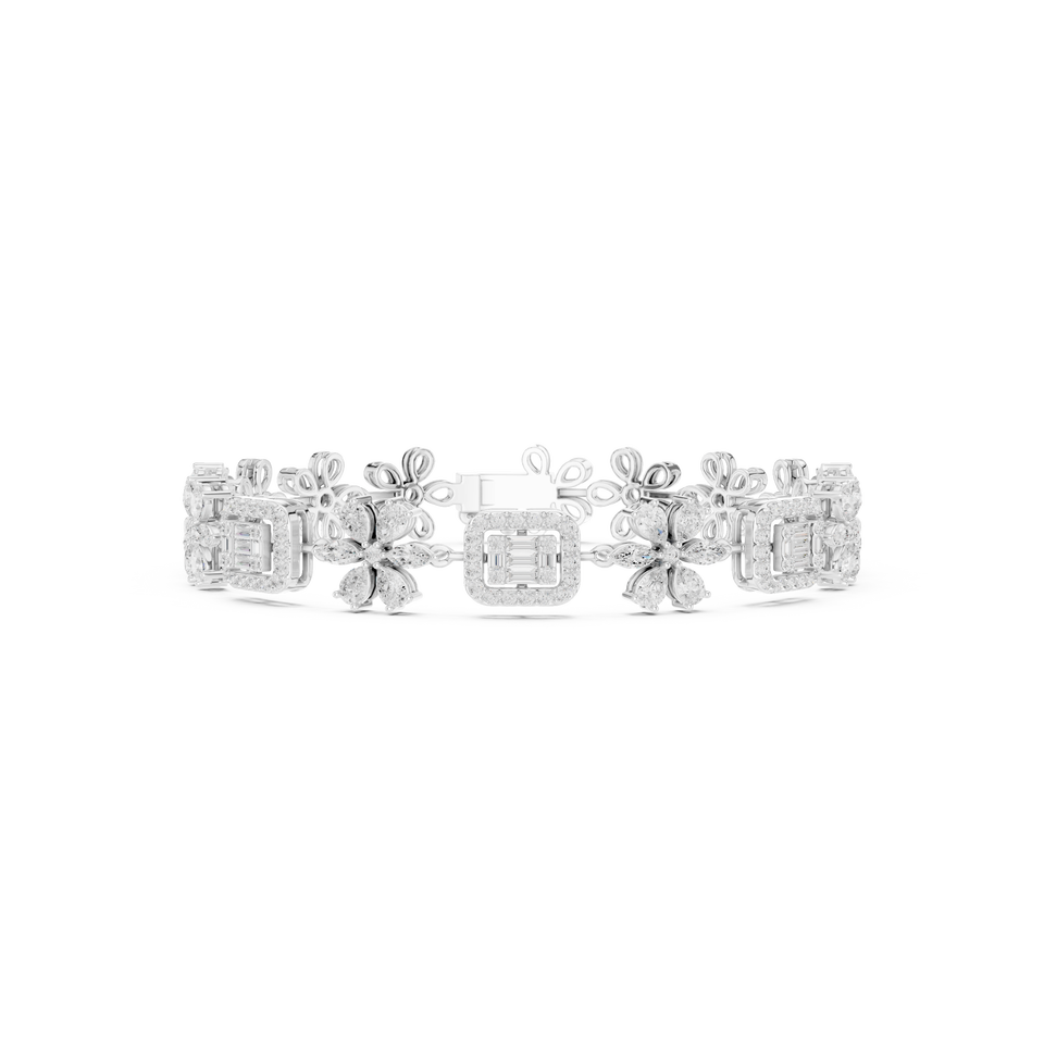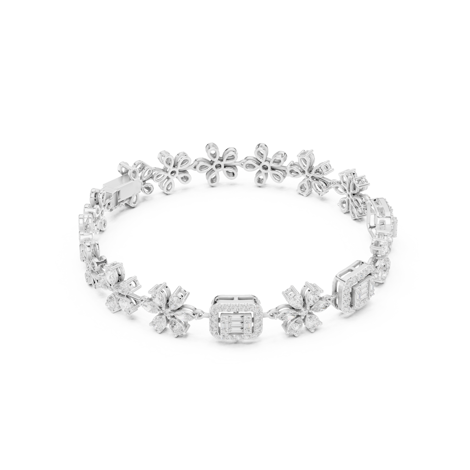 สร้อยข้อมือเพชรลายดอกไม้สุดหรูสีขาวทอง18K สร้อยข้อมือเพชรรูปดอกไม้ประดับเพชรสวยงามสีขาวทองมรกต