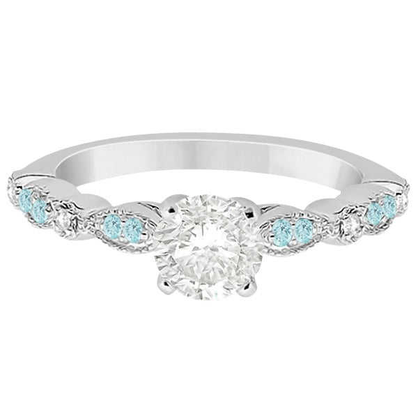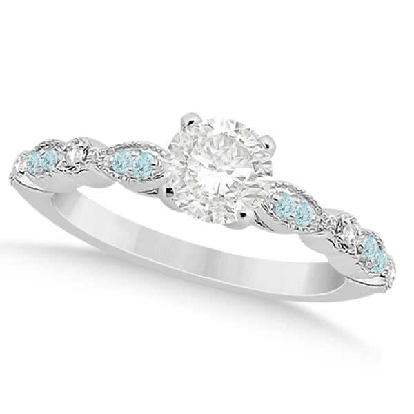 แหวนหมั้นเพชรทรงมาร์ควิสสีฟ้าอมเขียว 18K ทองคำขาว 0.24 กะรัต