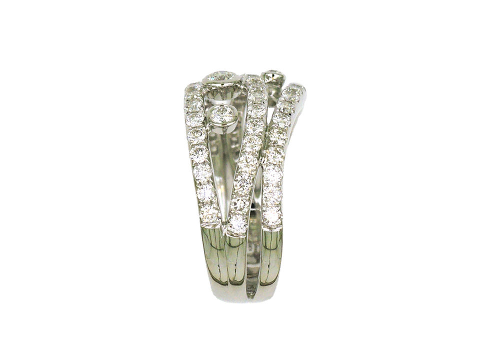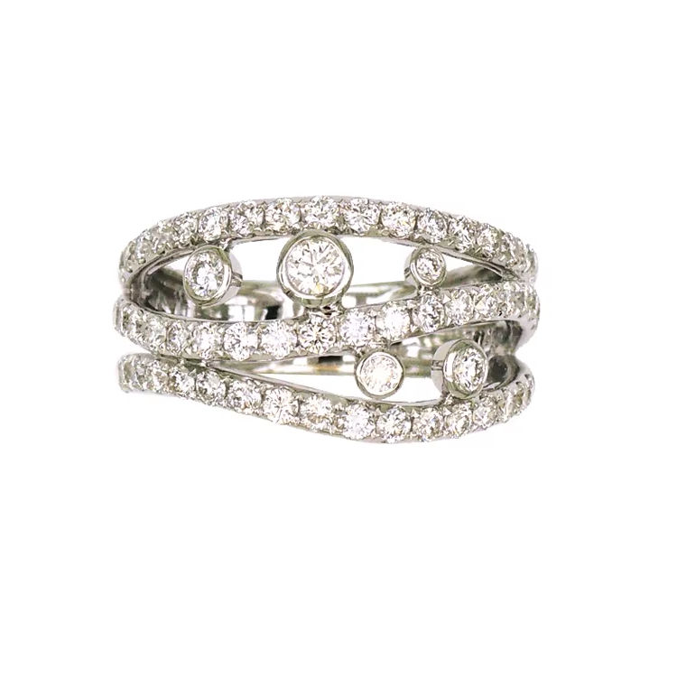 แหวนทองคำขาว 18K ดีไซน์ไขว้ประดับเพชรและพลอยเสริม หรูหราโดดเด่นสำหรับผู้หญิง