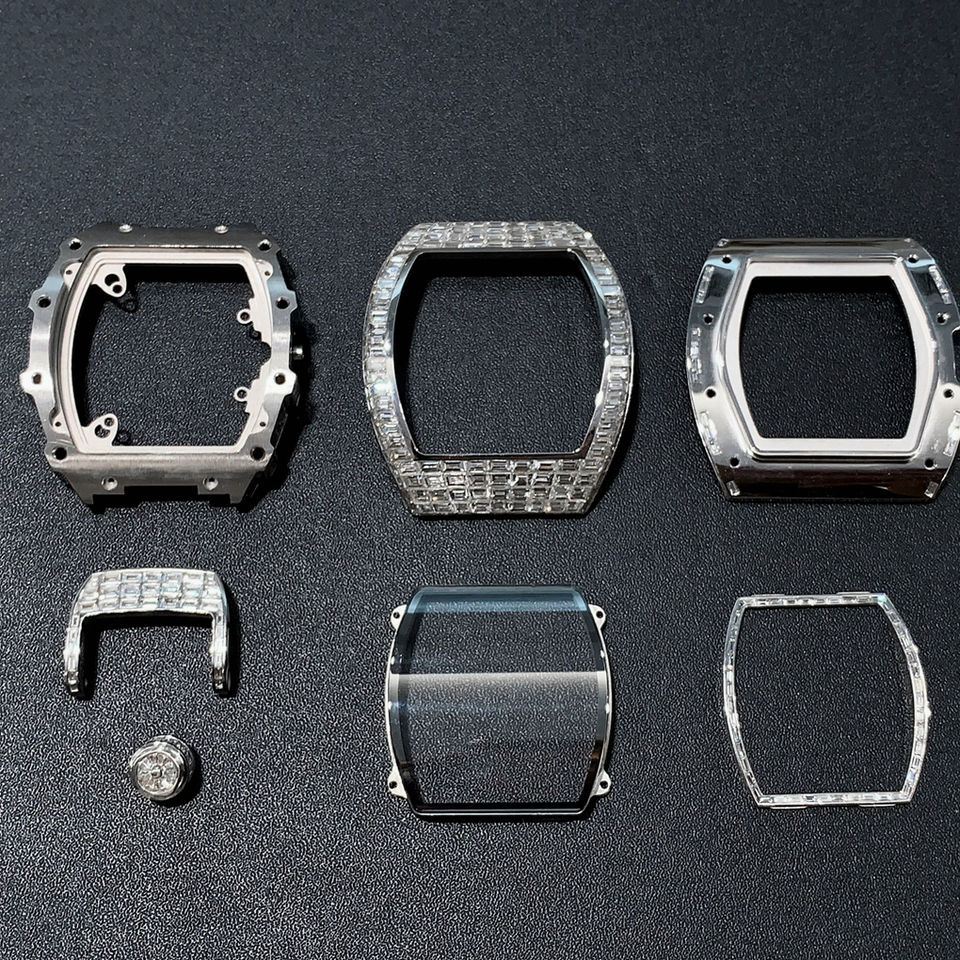เคสนาฬิกาเพชรธรรมชาติสีขาวทองคำขาว18K 40mm ปรับแต่งได้พร้อมหัวเข็มขัดทองคำขาวสำหรับ RM