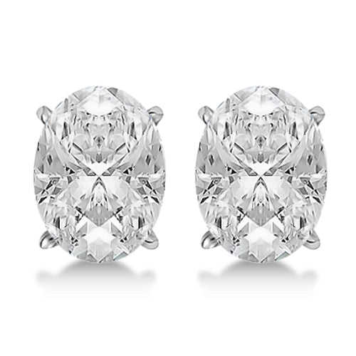 ต่างหูเพชรทรงรีทองคำขาว 18K แบบ 4-Prong Basket Setting