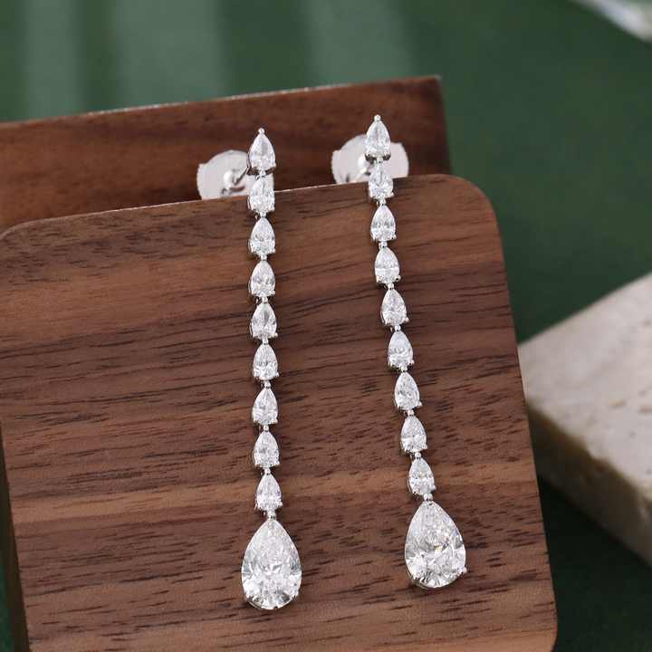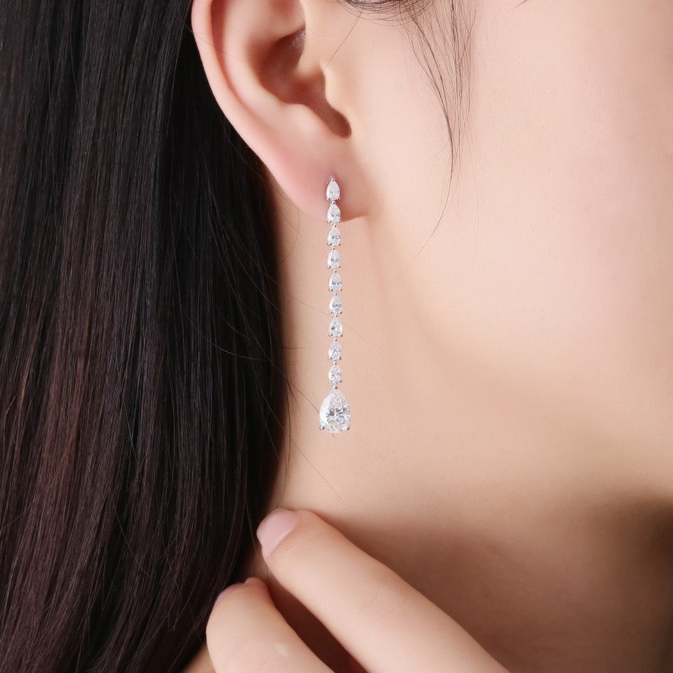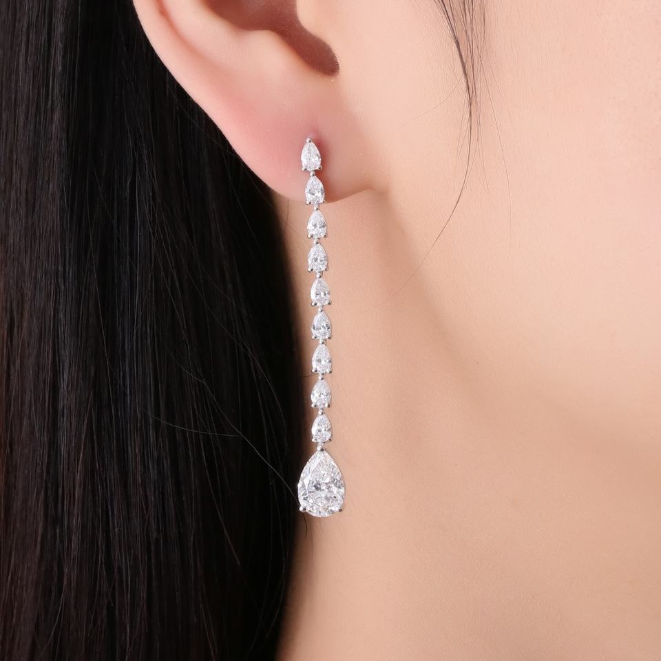 ต่างหูเพชรทรงลูกแพร์สีขาว 18K ทองคำขาว เกรด DEF VVS1 เพชรเลี้ยงในห้องปฏิบัติการ งานออกแบบพิเศษ เครื่องประดับหรูหรา ชุดต่างหูและสร้อยคอสำหรับงานปาร์ตี้