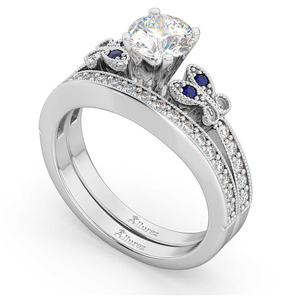 ชุดเครื่องประดับเจ้าสาวชุบทองคำขาว 18K และทองคำชมพู ประดับเพชรรูปผีเสื้อและไพลินสีน้ำเงิน 0.42 กะรัต สไตล์ทันสมัย เหมาะสำหรับงานแต่งงาน งานหมั้น และเป็นของขวัญ