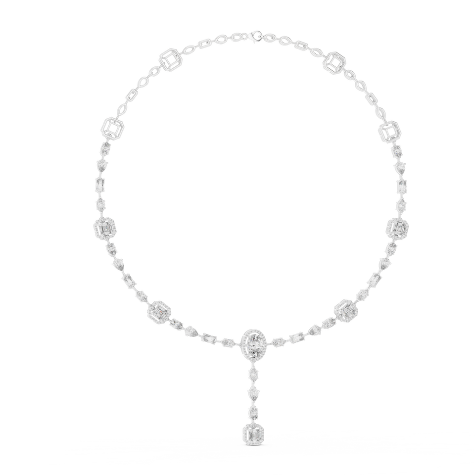 สร้อยคอเพชรชุบโรเดียมทรงรีลายเซ็นต์รุ่นพิเศษ18K