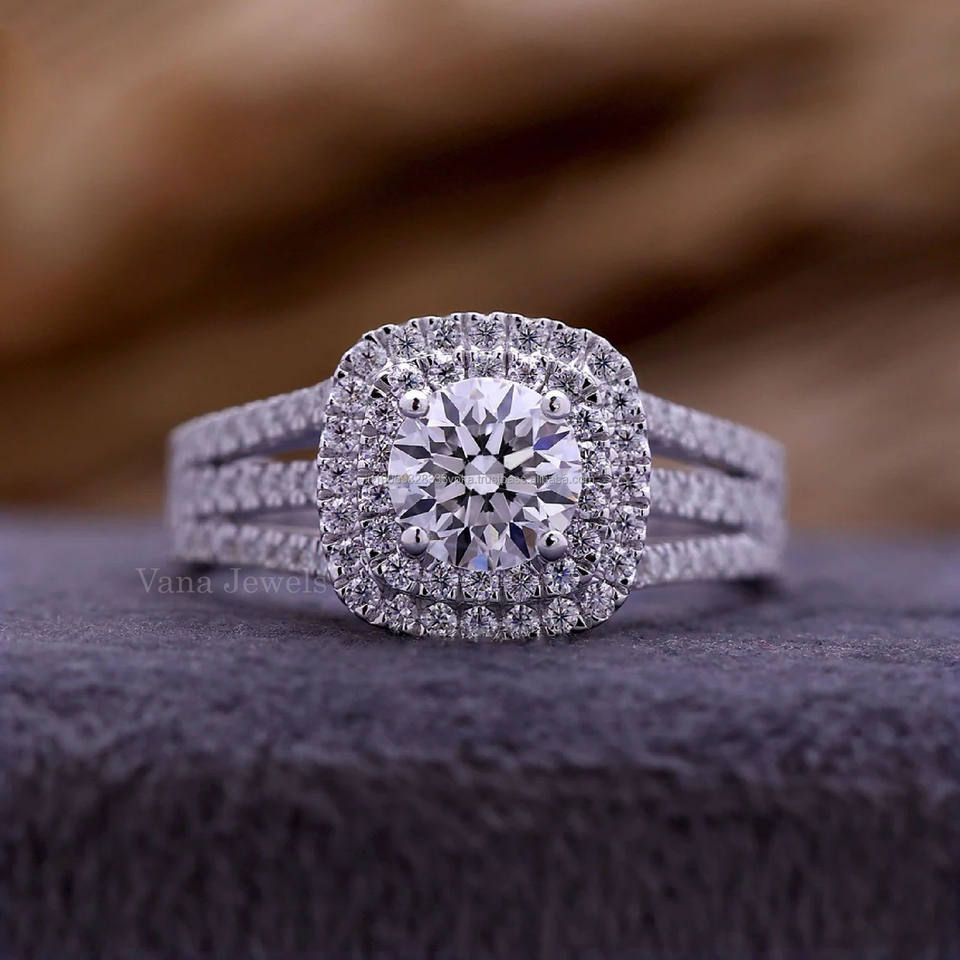 แหวนหมั้นสองชั้นสีขาวทอง18K แหวนเพชรสำหรับผู้หญิงที่ปลูกในห้องปฏิบัติการพร้อมของขวัญครบรอบสามชุดสำหรับภรรยา
