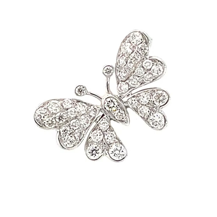 จี้ผีเสื้อคู่ประดับเพชรเต็มตัว ดีไซน์แปลกตา ทำจากทองคำขาว 18K เครื่องประดับแสนโรแมนติก