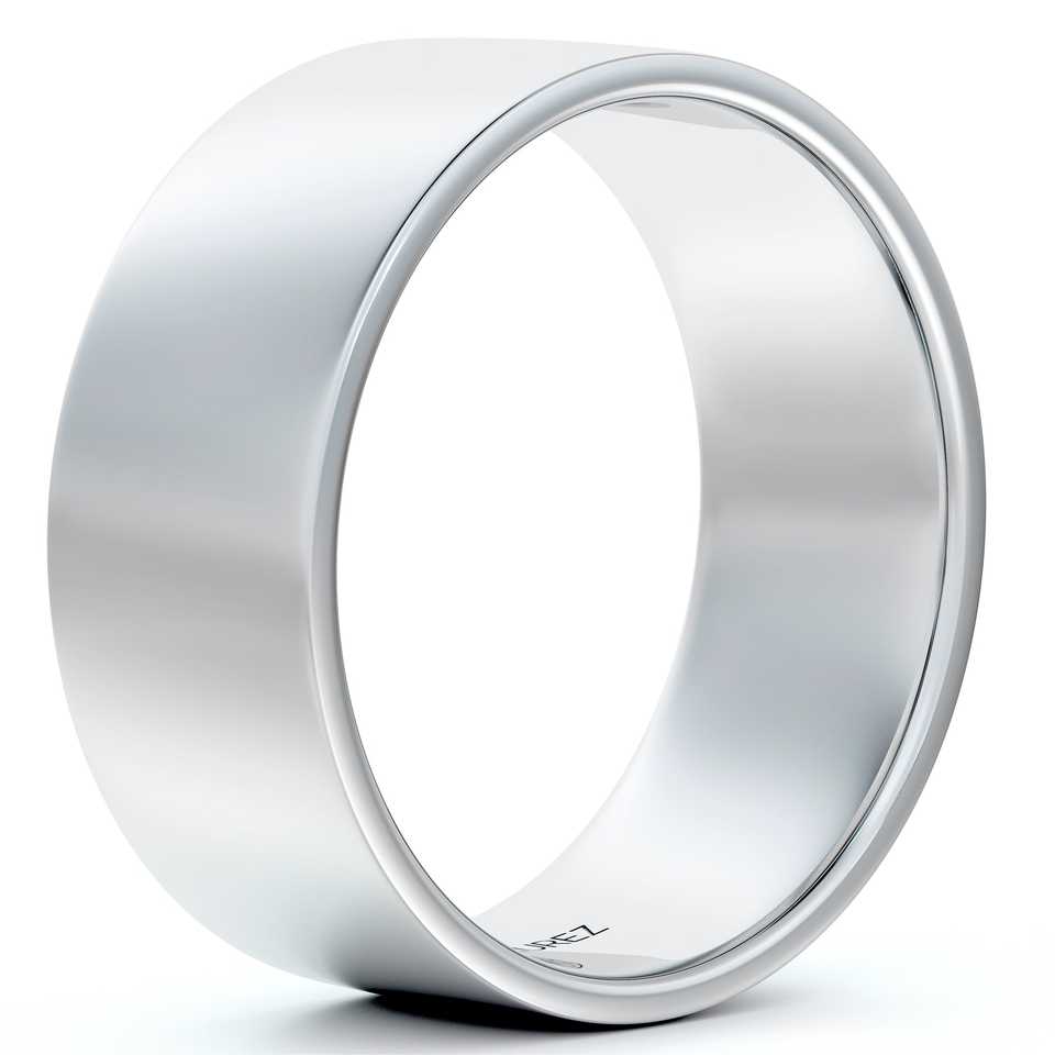 18K White and Yellow Gold Wedding Band Comfort-Fit Flat Ring (7 Mm) with Rhodium Plating IGI Certified Set with Cut Stone