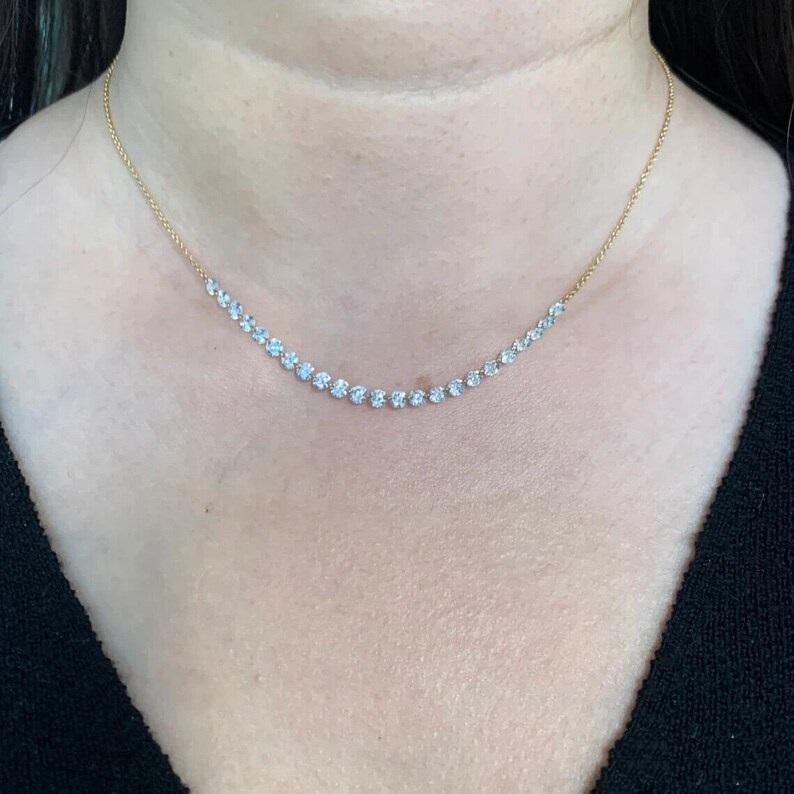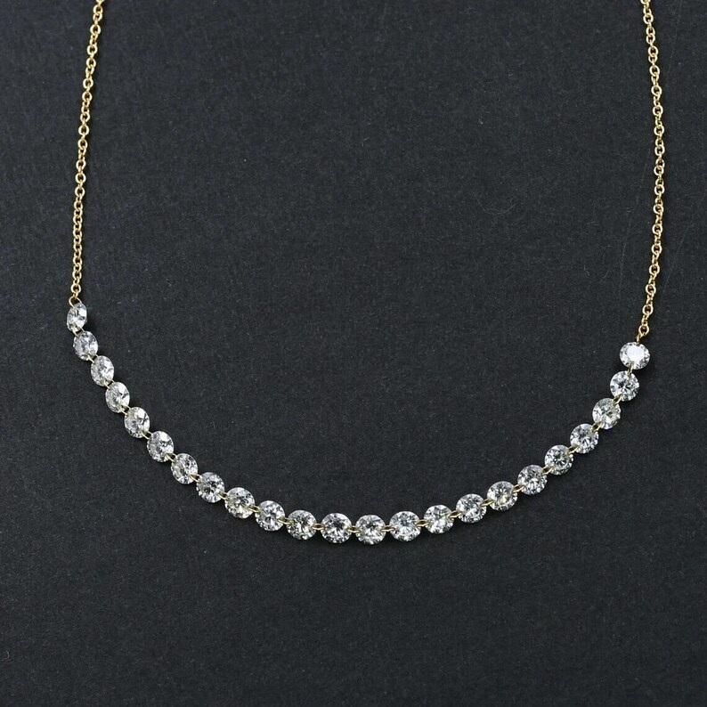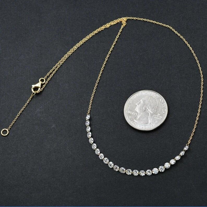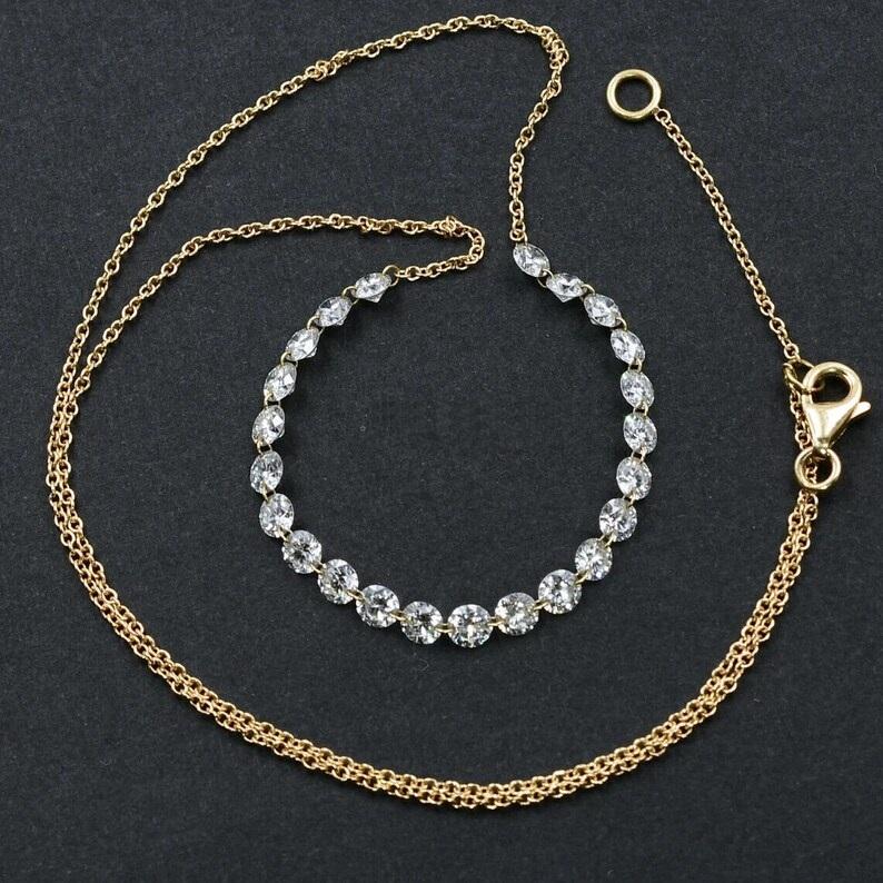 สร้อยคอเพชรเม็ดกลมสีเหลืองทอง18K ประดับเพชรเม็ดเล็กสีขาวแบบปรับได้
