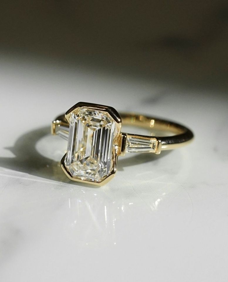 แหวนเพชรโซลิแทร์18K สีเหลืองทองดีไซน์ทันสมัยแหวนเพชรที่ปลูกแล้วได้รับการรับรองจากการจัดงานแต่งงาน