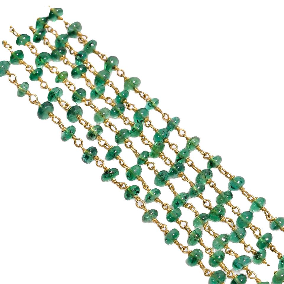 สร้อยคอโซ่ลูกประคำลูกปัดสีเหลืองทอง18K ประดับด้วยพลอยมรกตที่น่าสนใจสไตล์ชาติพันธุ์