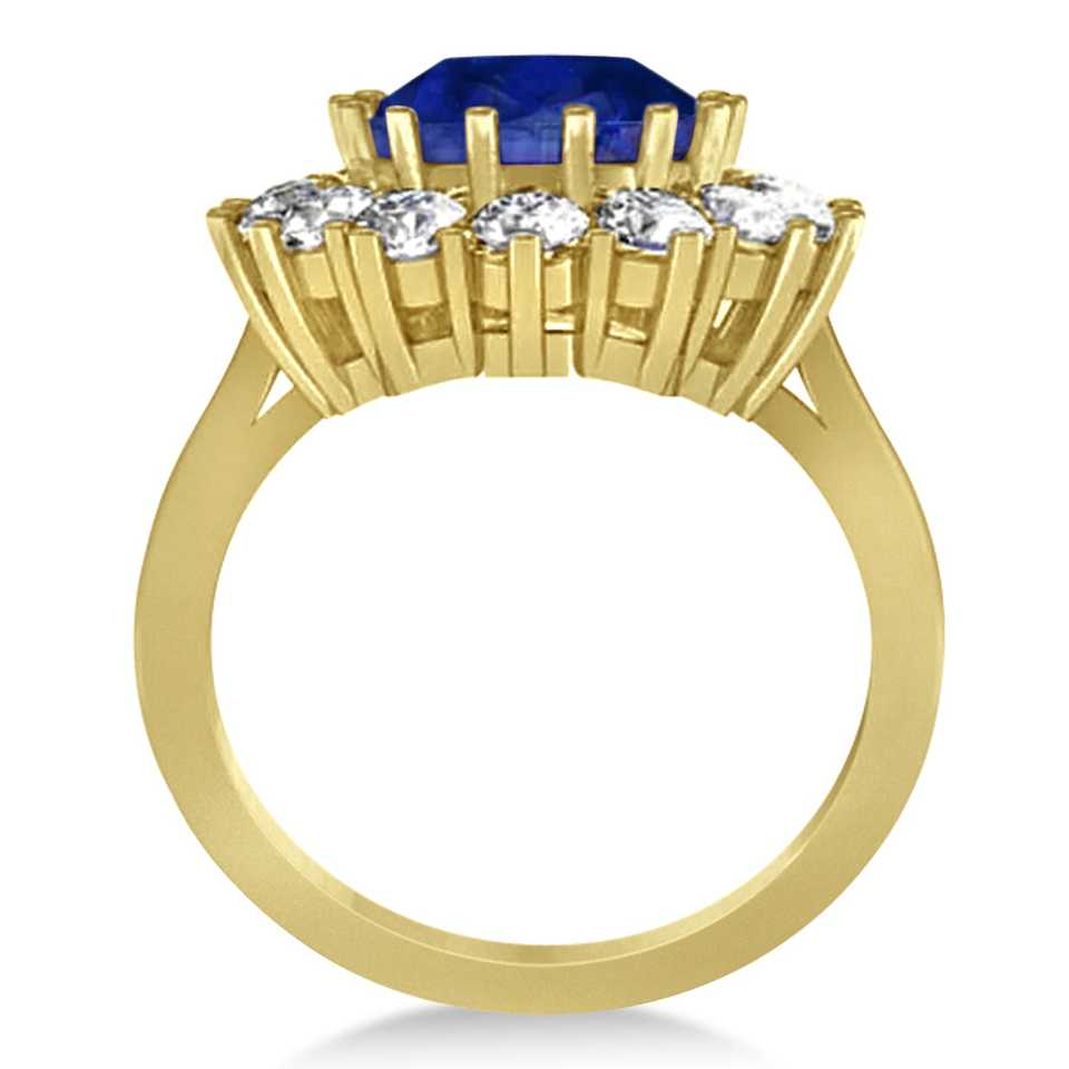 แหวนทองคำ 18K ประดับไพลินสีน้ำเงินทรงรีและเพชร 5.40 กะรัต