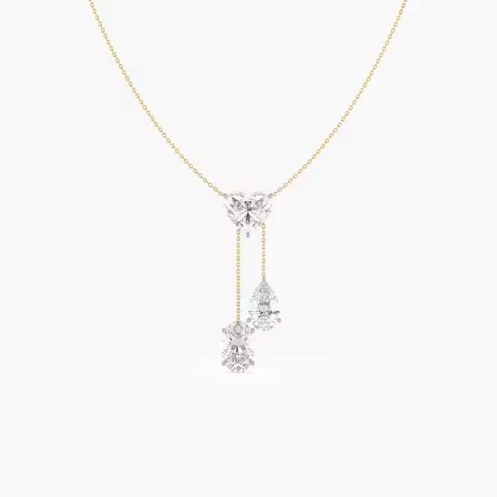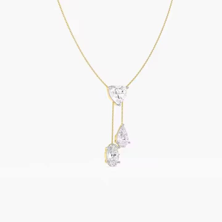 จี้ทอง18K สีเหลือง6.60 CT tw Lab ปลูกเพชรแฟชั่นสร้อยคอเส้นใยสแตนเลสสำหรับทันสมัย