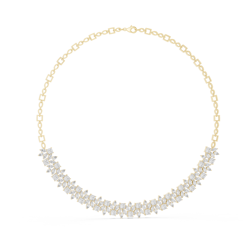 สร้อยคอทองคำ 18K ประดับเพชรทรงปรินเซสคัท ผลิตในห้องปฏิบัติการ ดีไซน์หรูหรา รุ่น Aurora Bloom RegalVine