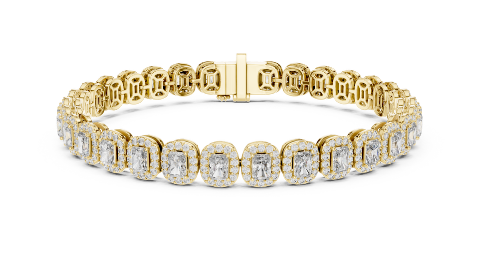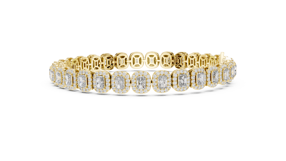 สร้อยข้อมือเทนนิสหรูหราประดับเพชรทรงเรเดียนท์คัท 18K ทองคำเหลือง พร้อมด้วยเพชรแล็บโกรว์