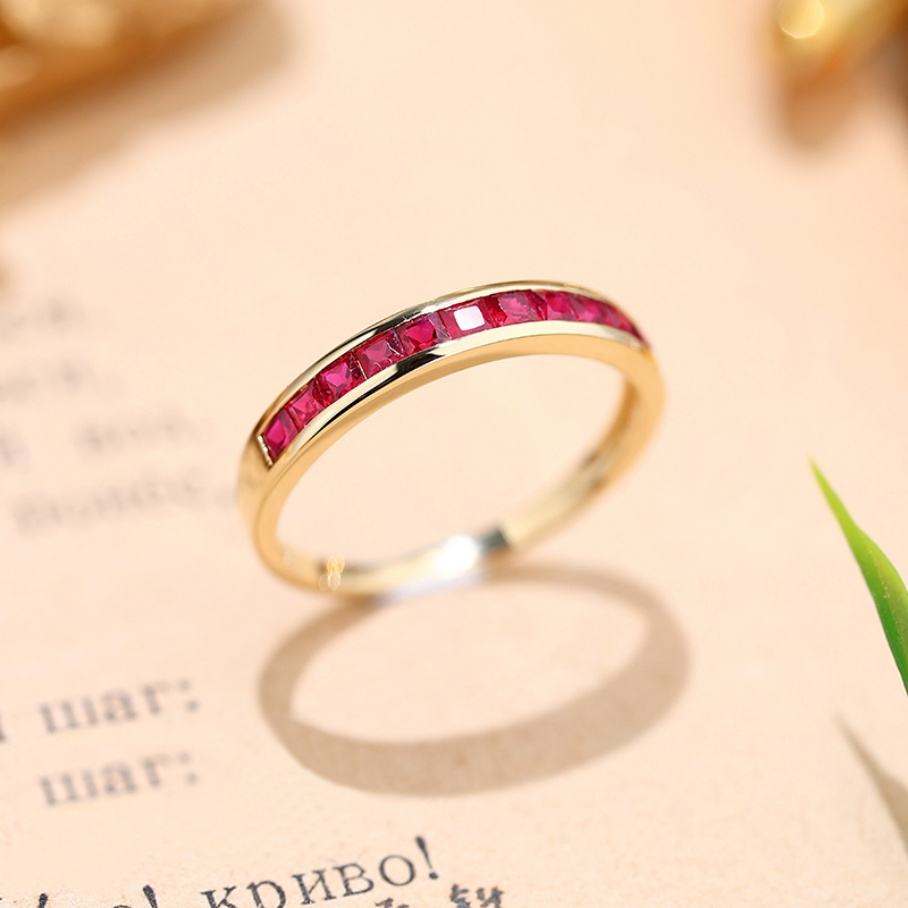 แหวนทองคำขาว 18K ชุบโรเดียม ประดับทับทิมทรงช่องสำหรับผู้หญิง เหมาะสำหรับงานแต่งงาน งานหมั้น งานครบรอบ และเป็นของขวัญในงานปาร์ตี้