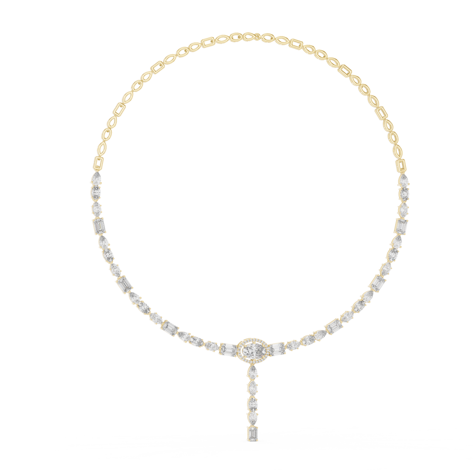 สร้อยคอเพชรหรูหรา 18K ทองคำเหลือง ประดับเพชรทรงรีสังเคราะห์ Starlume Cascade Moonveil Drop Lariat Celestial Drift Aurora