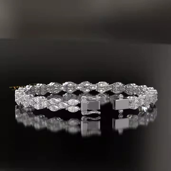สร้อยข้อมือเทนนิสสีขาวทอง18K สีเหลืองเครื่องประดับงานแต่งงานเพชรเพชรและเพชรที่สมบูรณ์แบบของขวัญสำหรับงานเลี้ยง