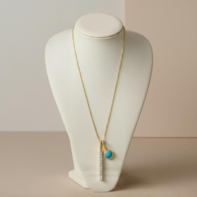 สร้อยคอจี้ทองคำ 18KT ประดับเทอร์ควอยซ์และเพชร ดีไซน์หรูหราแบบอสมมาตร เหมาะสำหรับมอบเป็นของขวัญให้คนที่คุณรัก