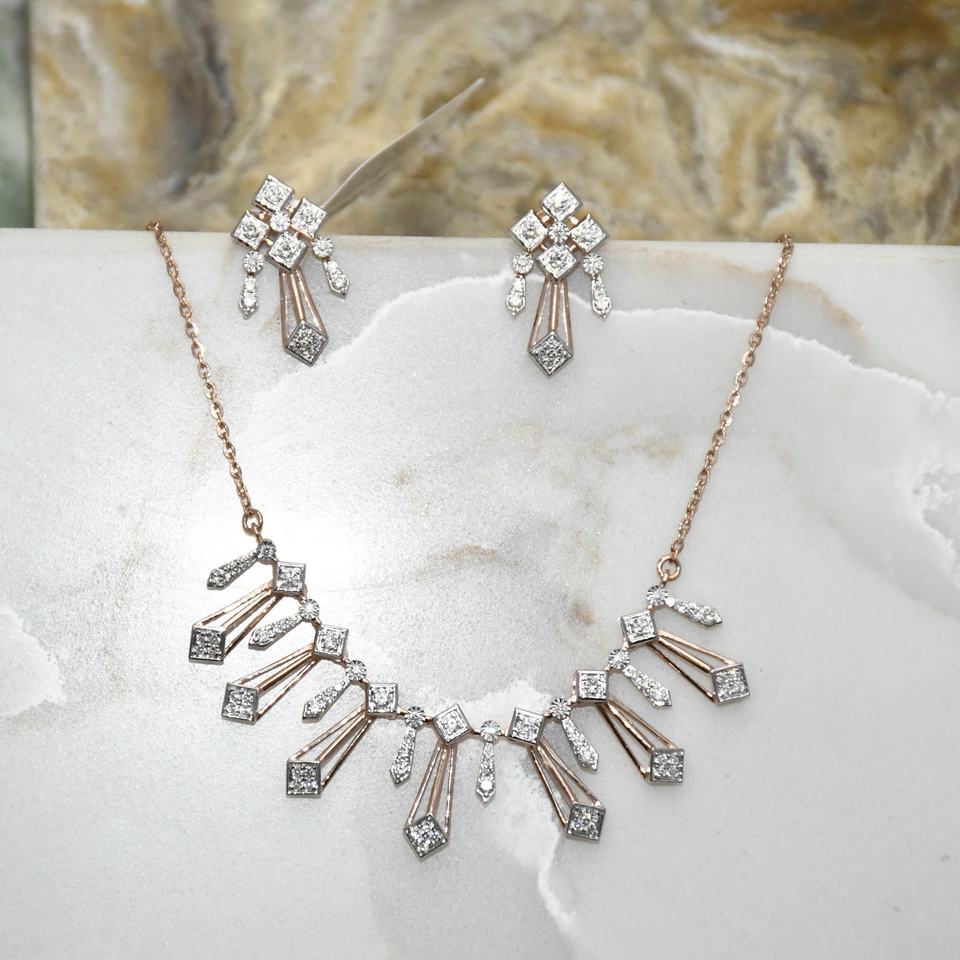 ชุดต่างหูสร้อยคอทองคำแท้18KT ตัดเพชรธรรมชาติสุดสุกใสได้รับการรับรองว่าดีไซน์แบบมินิมอลสำหรับงานแต่งงานงานหมั้น