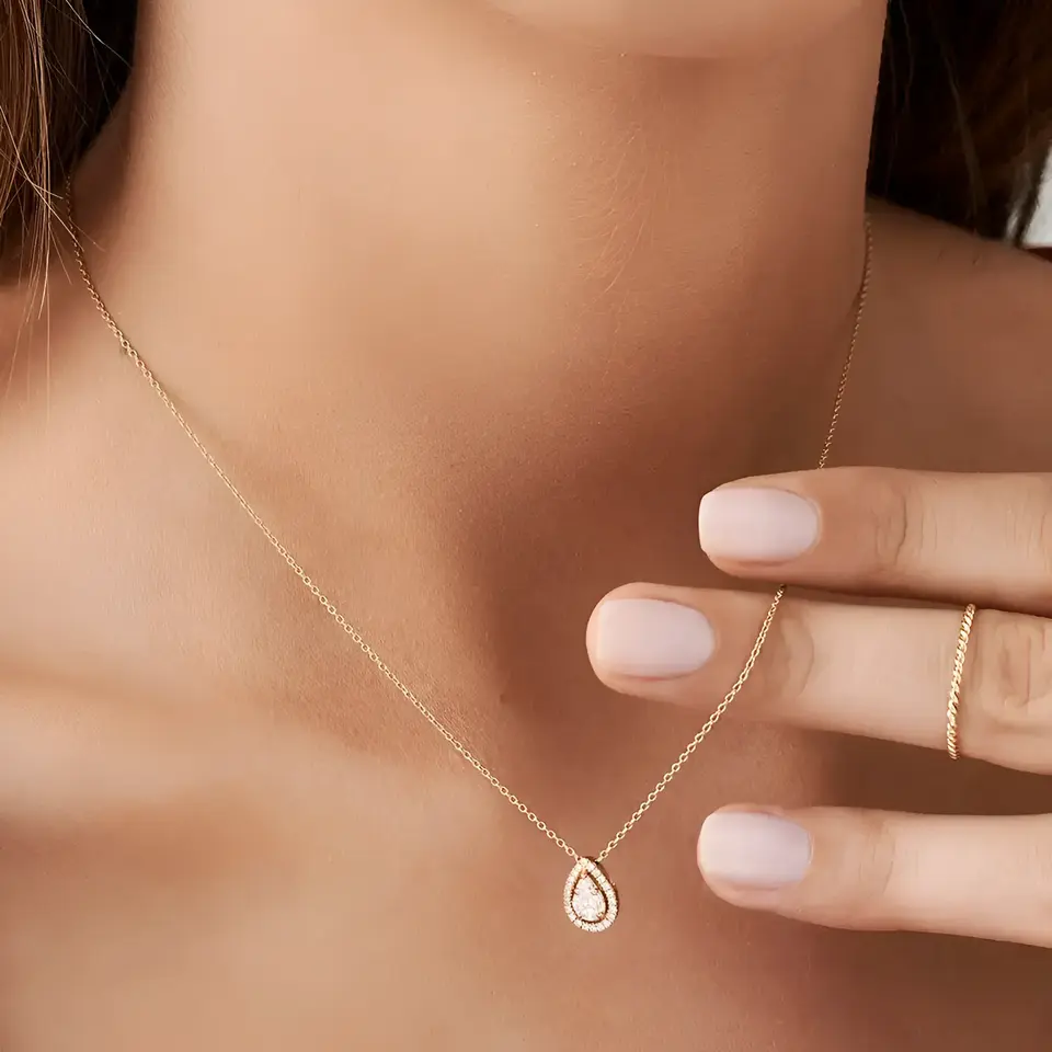 18KT Yellow Gold Lab Grown Diamond Pendant Pear E VS1 Clarity 2.5 Gram Premium Quality Luxury Jewelry Wholesale Women's