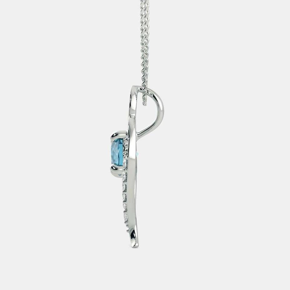 Luxira Jewels Fine Jewelry Sets Moissanite Silver Pendant with Blue Topaz Strand Chain for Engagement & Party