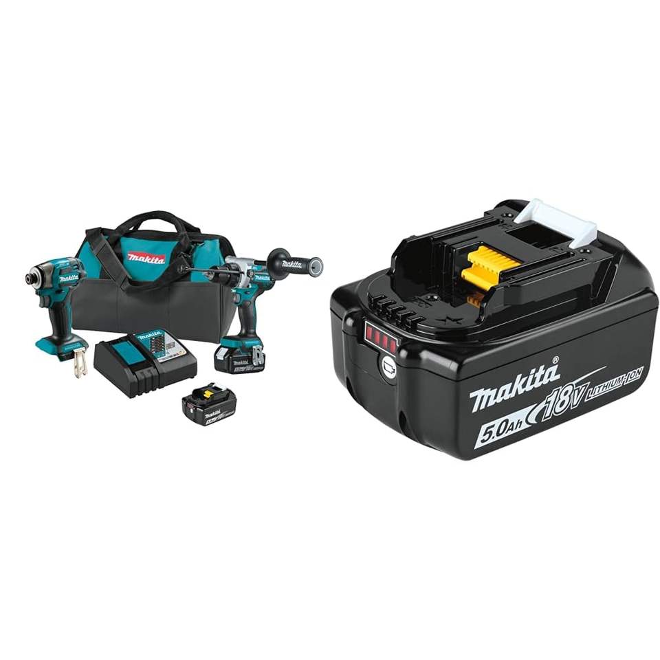 ชุดสว่านไร้สาย 18V LXT แบบไม่ใช้กุญแจ 2 ชิ้น ชุดคอมโบลิเธียมไอออนแบบไร้แปรงถ่าน พร้อมแบตเตอรี่เสริม 5.0Ah เทคโนโลยีไร้แปรงถ่าน 18V LXT