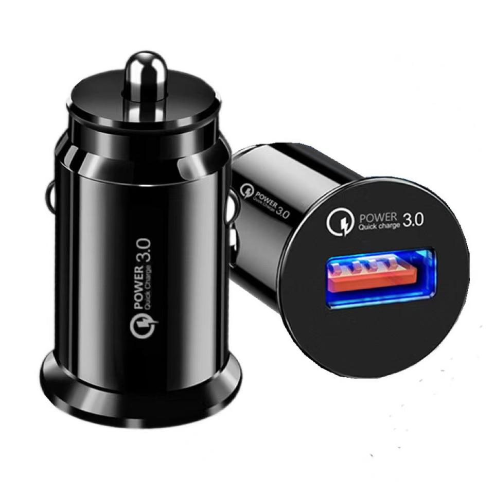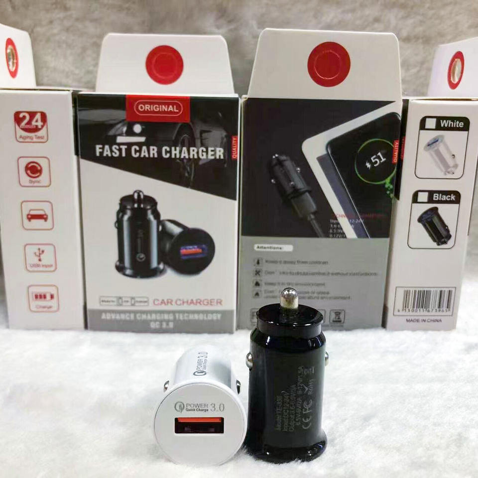 ที่ชาร์จในรถยนต์ขนาดเล็ก 18W 5V3A พอร์ต USB เดียว คุณภาพสูง ชาร์จเร็ว พร้อมกล่อง สำหรับ iPhone iPad ดีไซน์ซ่อนเร้น