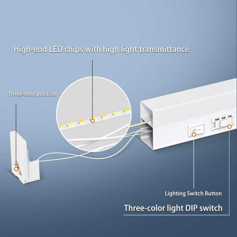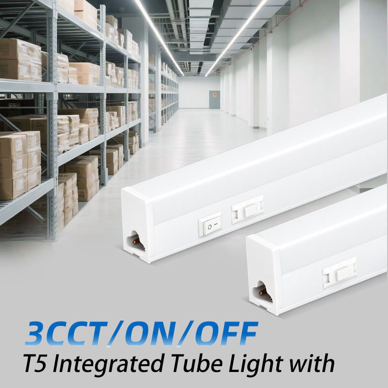 หลอดไฟ LED SMD2835 T5 แบบฝังในท่อพลาสติกทรงสี่เหลี่ยม 18W พร้อมสวิตช์ปรับแสง 3CCT ความยาว 2 ฟุต 3 ฟุต 4 ฟุต สำหรับใช้ในคลังสินค้าและโรงงาน