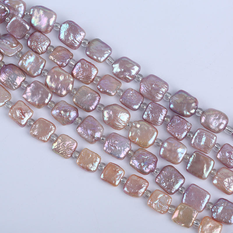 ไข่มุกน้ำจืดทรงบาร็อคธรรมชาติ ขนาด 18 ซม. 11-13 มม. ร้อยเป็นเส้นสั้น สีขาว/ชมพู สำหรับทำสร้อยข้อมือ DIY ขายส่ง