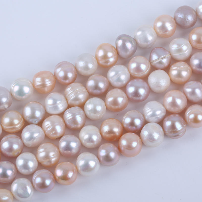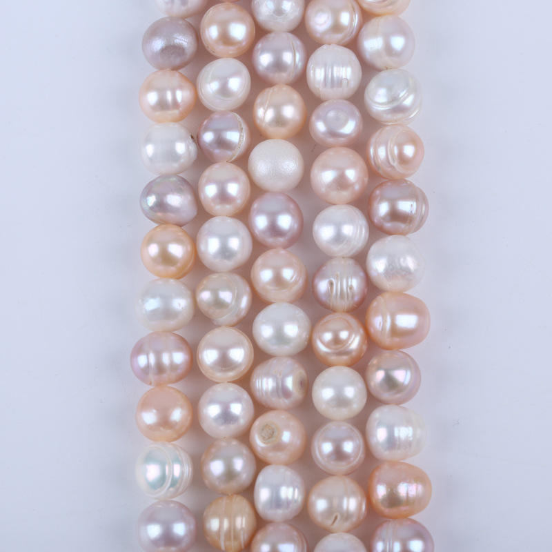 ไข่มุกน้ำจืดธรรมชาติสีขาวผสมสีม่วง ขนาด 18 ซม. 9-10 มม. สำหรับทำสร้อยคอ DIY ไข่มุกเม็ดเดี่ยว
