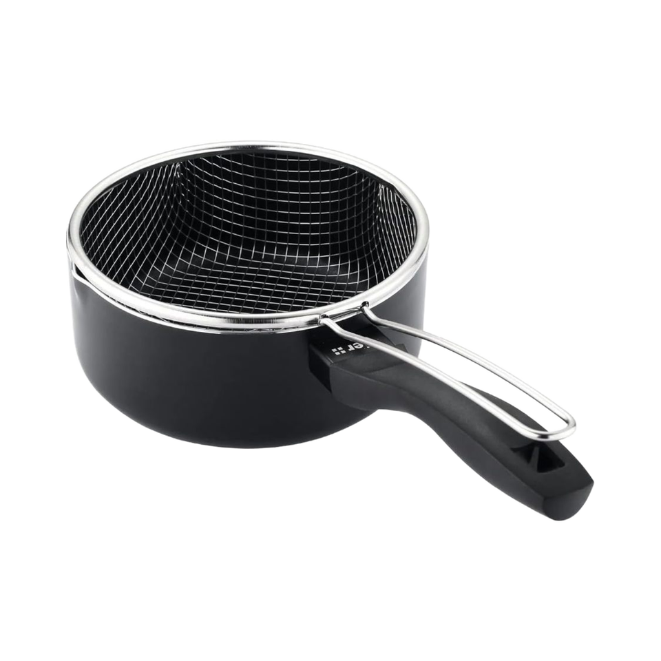 หม้อซอสเคลือบอลูมิเนียมขนาด18ซม. พร้อมตะกร้าทอดก้นแบบเหนี่ยวนำ