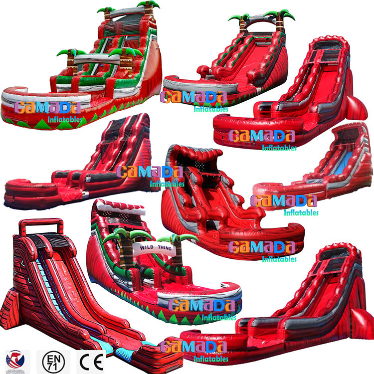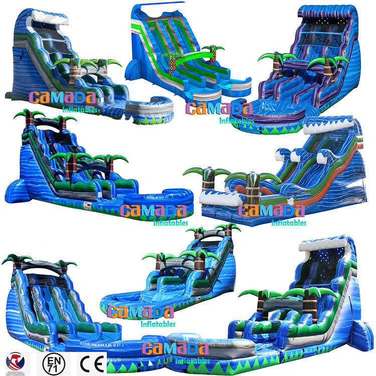 18ft สไลด์น้ำเป่าลมสองเลนสำหรับฤดูร้อนต้นปาล์มเขตร้อนเช่าน้ำพาณิชย์ความบันเทิงกลางแจ้งสำหรับเด็ก