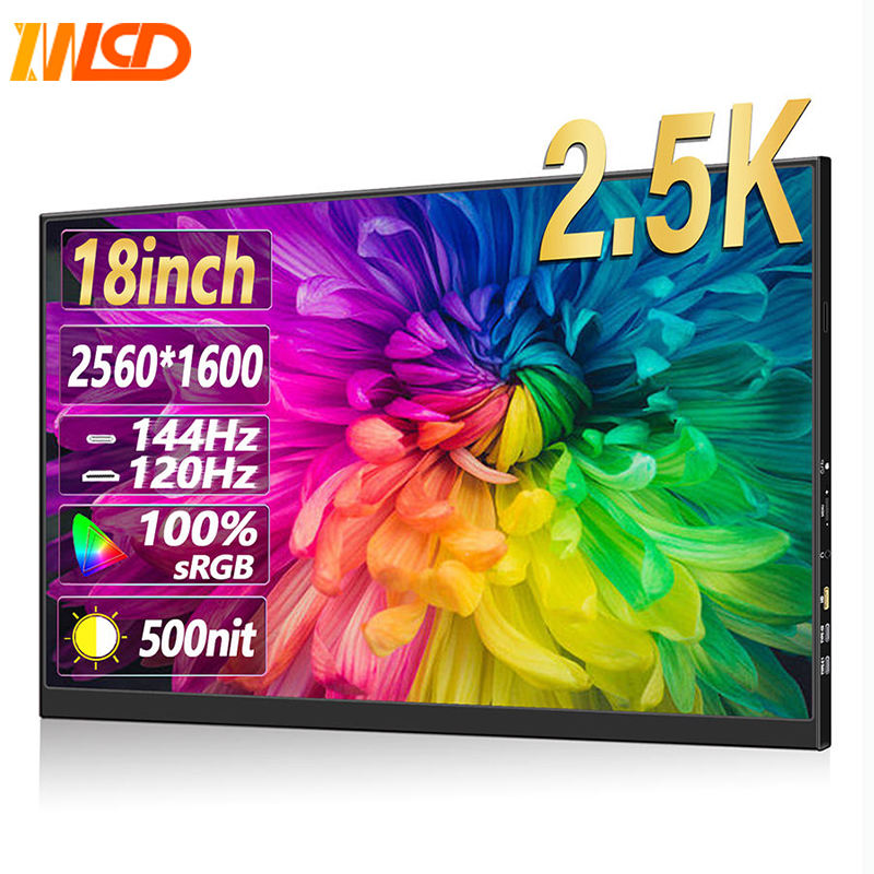 18นิ้ว100% GB จอภาพแบบพกพา2.5K IPS External Ultra Slim Travel Monitor 130 120Hz Second พร้อมขาตั้ง