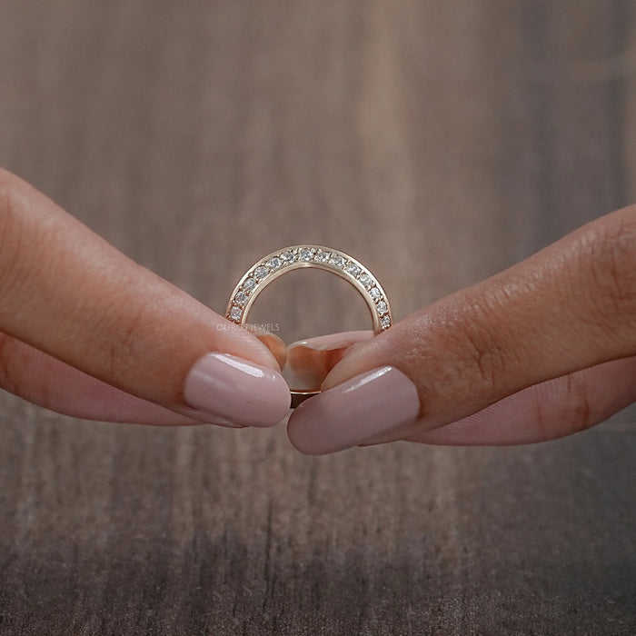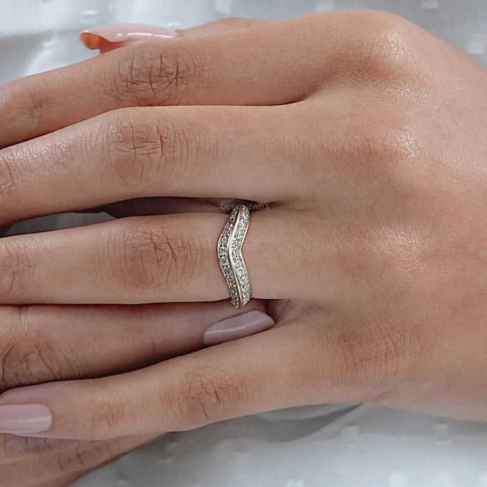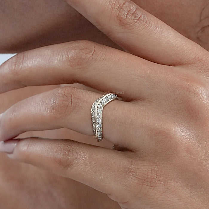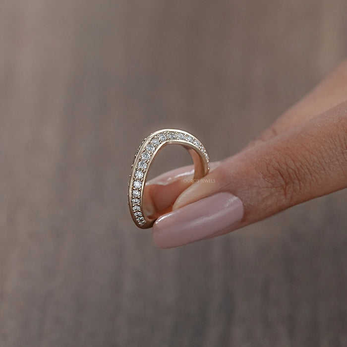 สายเพชรกลม18K 14K แถบแต่งงานแบบโค้งคู่ทำด้วยมือสุดหรูสายหมั้นดีไซน์สวยงาม