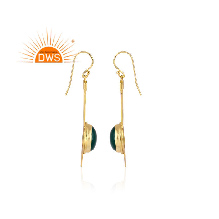18พันชุบทอง925เงินสเตอร์ลิงของขวัญวันเกิดห้อยต่างหูผู้ผลิตเครื่องประดับสีเขียวนิลพลอยงบต่างหู